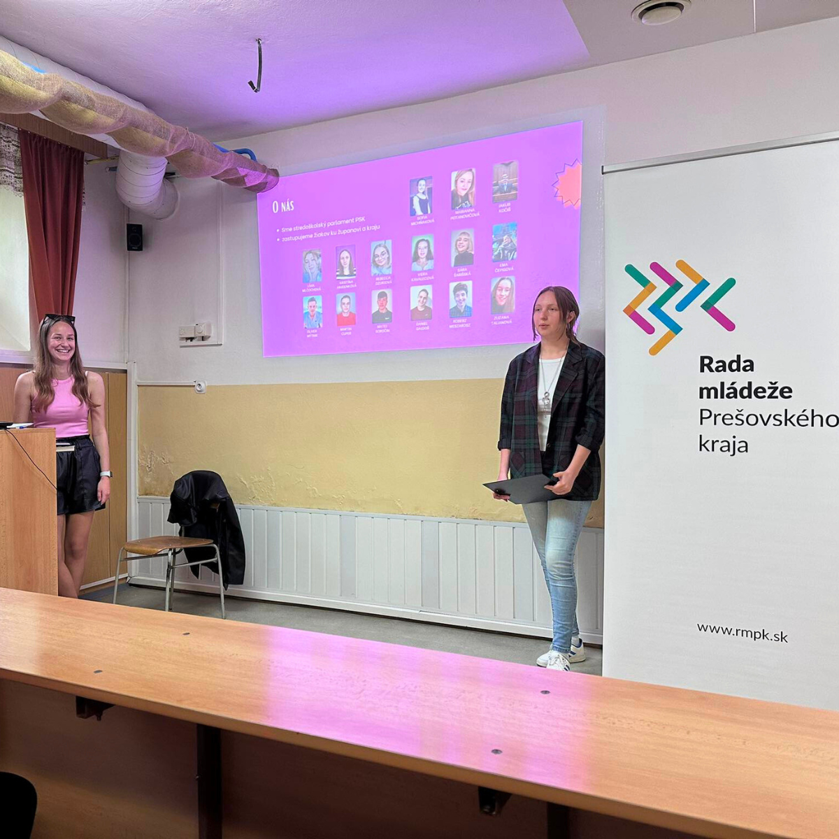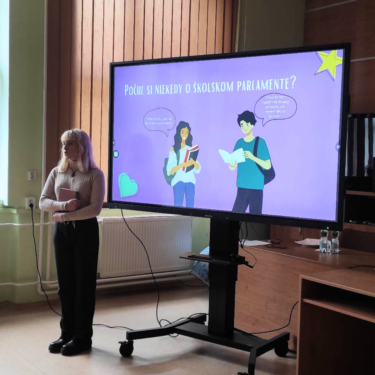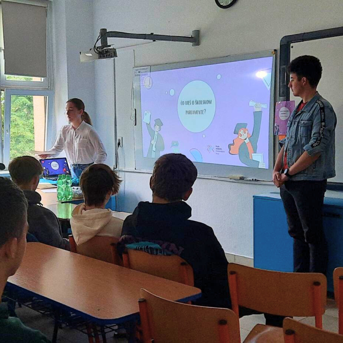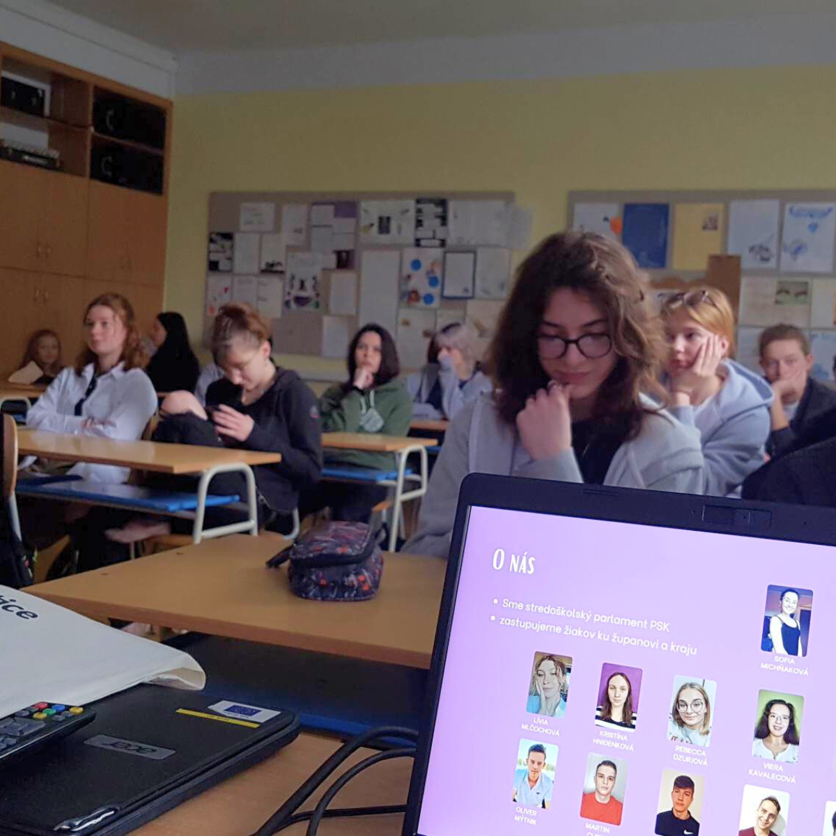 15.5. sa uskutočnili prvé prezentácie projektu Stredoškolského parlamentu Prešovského kraja s názvom “Čo vieš o školskom parlamente?”.