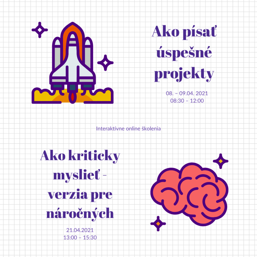Ponuka online školení na apríl 2021 24. marec 2021 Ponuka online školení na apríl 2021 Ako písať úspešné projekty? Školenie projektového manažmentu (nielen) ku grantovej výzve...